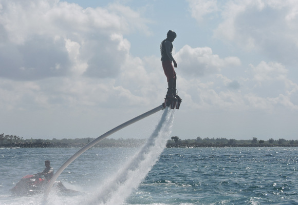 ジェットスキーの噴射を利用して舞い上がるスポーツ。