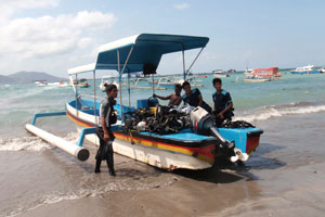 ボートに乗る前に、陸で日本語の説明ビデオをみます。その後、注意事項やバリ島ダイビング器材の説明はボートの上で英語で行われますが、先に日本語での説明ビデオを見ることが出来るので、器材の説明はスムーズに聞くことができるでしょう。