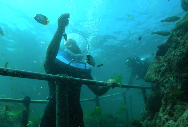 バリ島でシーウォーカー体験をしてきました。ガイドブックを見ていたときに、とても面白そうなマリンスポーツだと思い、夫婦で参加しようと決めたのですが、いつもカーチャーターをお願いしているこちらの旅行会社だと、ガイドブックで見たシーウォーカーよりもかなり安い、半額以下の料金で出来てしまう事が分かり、とても得をした気分になりました。ヌサドゥアの海で潜ったのですが、当日はとても天気が良かったこともあり、海の中に潜っていても太陽の光が差し込んでとても明るかったです。キラキラした海の中の世界はとてもきれいで、魚たちが生き生きと泳いでいる姿を見ることができて、とても楽しい体験でした。これだけ安いのだったら、是非やってみても損はないと思います。