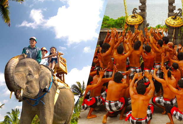 こちらのオプショナルツアーですが、ツアー名では「エレファントサファリ+ウルワツ寺院」となっていますが、案内されたのがエレファントサファリではなく、エレファントキャンプでした。ツアー名だけしか見ないで、ホームページをよく読まなかった私たちも悪いのですが、有名なエレファントサファリパークに行けると思っていたので、ちょっと残念でした。エレファントサファリパークのほうが規模も大きいですし、エンターテイメント性もあるようなので、こじんまりとしたエレファントキャンプはちょっと想像していたのとは違いました。でもエレファントライドはそれなりに楽しかったです。そのあともウブド近郊の見所を回り、ケチャダンスを見に行き、一日でいろいろなことができて、とても充実しました。