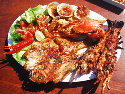 浜辺で海の幸を満喫