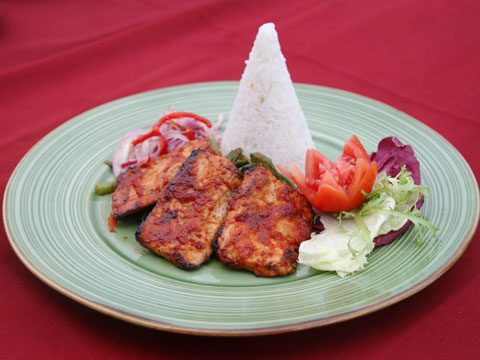 スナッパー(白身魚)のBBQと生玉ねぎのサンバル