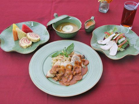 高原野菜とささみのサラダ、ハニーオレンジドレッシング添え - <スープ>