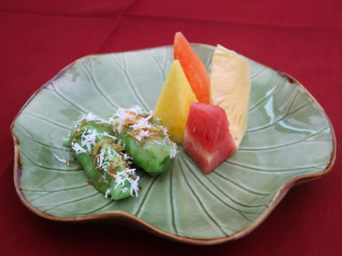 バナナともち米のココナッツあえ - フルーツ(スイカ、パパイヤ、パイナップル)