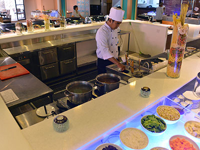ご利用メニュー:バリ島 CATEGORY_NAMEホテルの朝食でオムレツ作ってもらうだけで嬉しいのに、ここではシェフが目の前で鉄板焼きとかラーメン、焼きそばなどを調理してくれるので、満足度は◎。