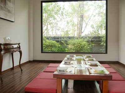 | 座席数 | ビュッフェ棟: 100席 アラカルト棟: 72席 個室: 32席(1室)、16席(1室)、8席(5室) |