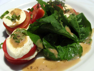 | Fresh Mozarella Tomato and Ruccola Salad (フレッシュモッツァレラトマトとルッコラサラダ) |