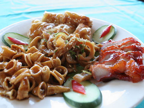 | セット3 : シンガポール・焼きそば セット シンガポール・焼きそば、餃子スープ、シュウマイ、エビ餃子 |