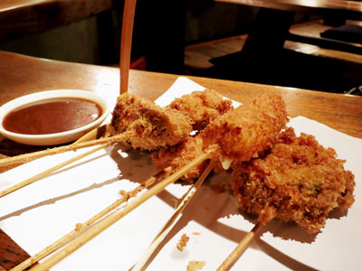 | 串焼き (ナス、トリ皮、手羽、レバー、牛、海老、つくね、きのこ、ミックス など) |
