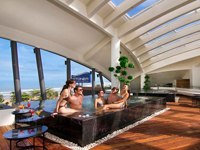 バリ島でも指折りのスタイリッシュなリゾート空間、ストーンズ。目の前がクタビーチという絶好のロケーションなので、お食事やドリンクを楽しみながらサンセットを眺めてゆったり。店内にはレストラン・サルト、プライベートダイニング・キャメロンスイート、ラウンジ&バー・インファミーがあり、お好みで利用していただける施設が整っています。