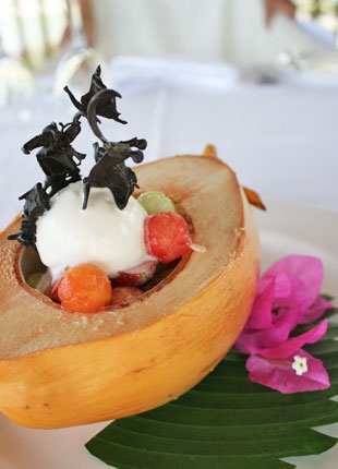 - (Yellow Coconut filled with Fresh Fruits topped with Vanilla Ice Cream)