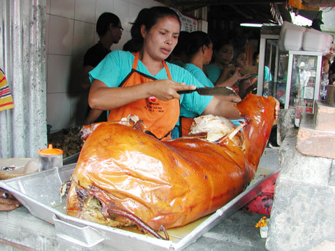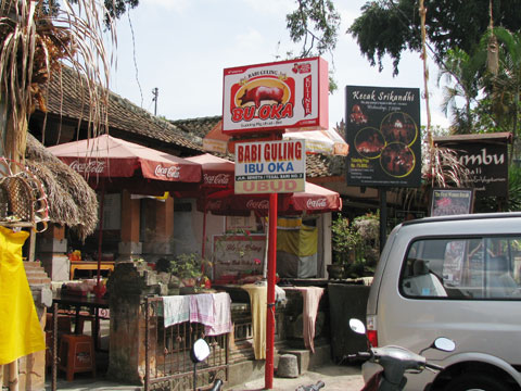 ご利用メニュー:バリ島 CATEGORY_NAME離れたトコに2号店、3号店もあるそうなんですが、私が行ったのは1号店である本店。物凄い賑わいなので回転も早く、待っている間何度も焼き立ての豚の丸焼きが運び込まれてきました。この丸焼きを見ると、やっぱり今でもちょっとギョッとします。なんというか、ワイルドな料理です。でもこんがりと焼けて美味しそうな色です。バビグリンは焼き立てが美味しいと言いますが、ここは回転が早い分いつでも焼き立てのジューシーなバビグリンが味わえるようです。皮はパリパリ、野菜もお肉もフレッシュでした。