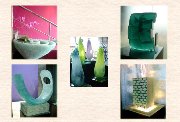 南国の空と海をイメージでしょうか?ブルーとグリーンのカラーが多く感じました。 とても独創的で、お洒落! 良いわ~欲しいわ~も、現実は重い&割れ物だから・・・PASSです(>_<) 目で見て楽しむだけにしました...ちょっと残念(^_^;;