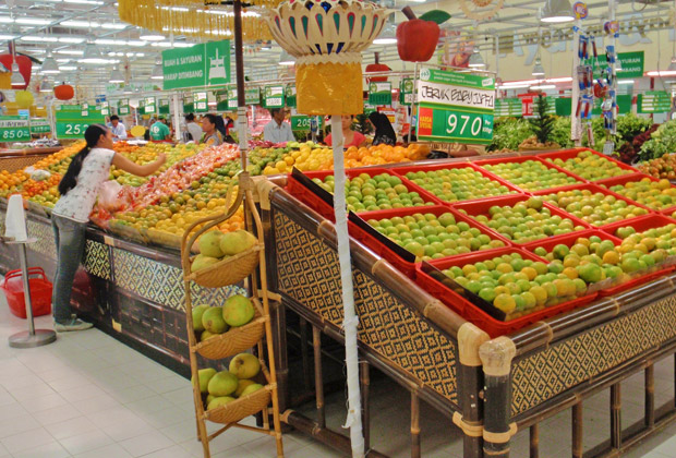 バリ島でも最も大きなスーパーマーケットの一つだと思います。本当に巨大な売り場面積で、食料品、日用品などのほかに電化製品、家具などの地元密着の商品だけでなく、観光客向けのおみやげもひと通りそろっていました。値段の表示がよくわからなかったですが(日本のようにきちんと商品が陳列されていないバリ島のスーパーマーケット 笑)、でもこれといって高級感があるスーパーマーケットというわけではなく、庶民のためのスーパーマーケットという感じだったので、決して高くはないと思いました。おみやげコーナーのほか、地元の食品ナシゴレンの素とかサンバルソースなどの調味料やチョコレートなどのお菓子を買いました。レジも結構混んでいて人気のスーパーマーケットなんだと思います。