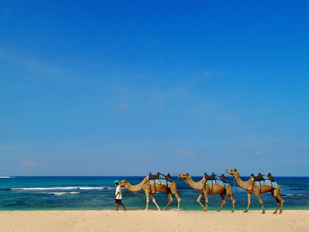 | ヌサドゥアはスパがとても充実しているエリアです。 ジ・アムルタ、タマンサリ、 など、ご希望と予算に合わせてお選びいただけます。 | グランド・ハイアット、アヨディアリゾート など、4つ星~5つ星クラスの大型リゾートがメインですが、 カユマニスやザ・バレなど、プライベートを重視したヴィラリゾートもあります。 | ニッコーホテル前でらくだと散歩する キャメルサファリ が人気です。 |