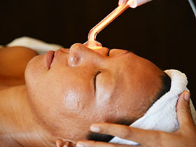 吸引機を使用し、毛穴に詰まった古い脂肪を取り除きます。日本ではエステなどでこのようなコメド(脂肪)の除去は見られますが、バリ島で行っているスパは珍しいでしょう。