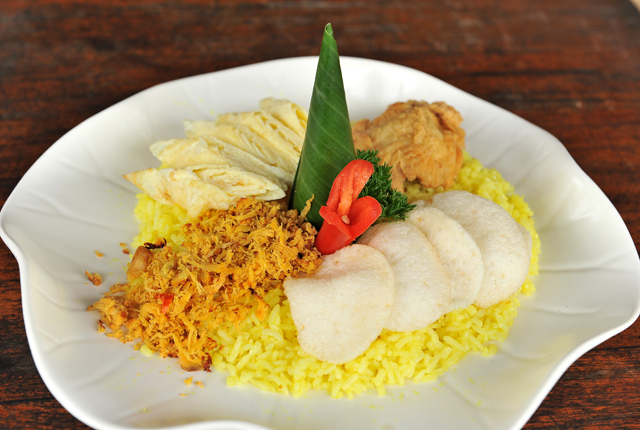 民族衣装を着たスタッフが出迎えてくれて、宮殿のようなレストランですね。王様になったような気分です。料理の盛り付けもパーフェクト!ワンランク上のバリ島のレストランという感じです。